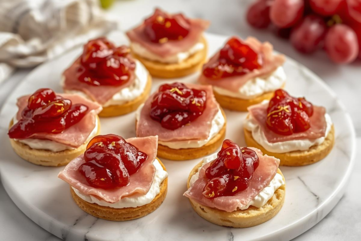 La base son las crackers saladas, que aportarán un toque crujiente tan apetecible en cualquier picoteo. Sobre cada cracker se unta una pequeña cantidad de queso crema, lo justo para aportar cremosidad sin que el canapé resulte pesado.